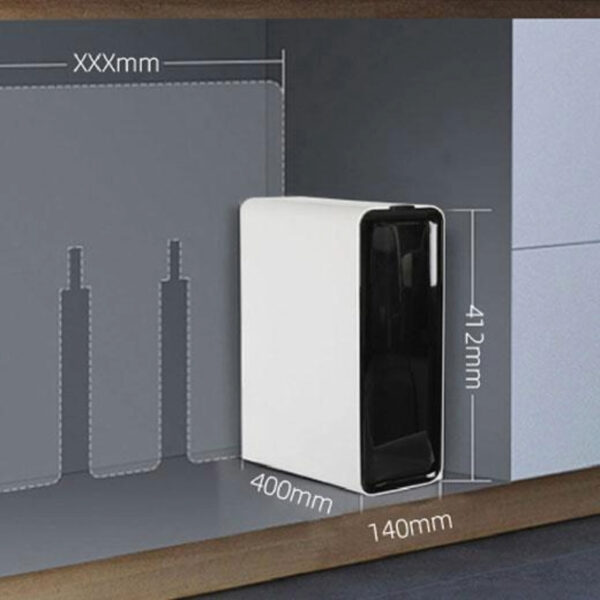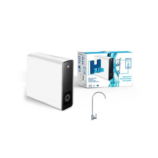 HIDROWATER | Aqua España Osmosis inversa Helia   -Interfaz intuitiva: con avisos luminosos para cambio de cartucho y membrana. -Grifo inteligente HELIA (consulta). -Caudal punta: 1,6 Lpm (el caudal puede variar en función de la presión, temperatura y salinidad del agua). -Membrana 800GPD. -TDS máximo de entrada: 1.000 ppm. -Bomba booster: de diafragma de alto rendimiento. -Presión de entrada: 1 a 4 Bar. -Temperatura de entrada: 5 a 38º C. -Alimentación eléctrica: 24Vdc. -Adaptador eléctrico externo: 100-240V 50/60Hz: 24Vdc