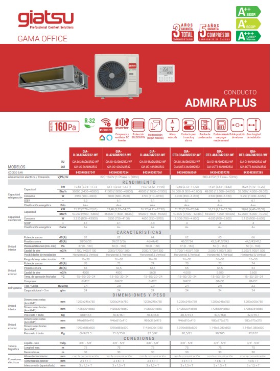Etiquetas: Aire acondicionado, conductos, GIA-D-42ADM2RR32-WF, giatsu, Inverter