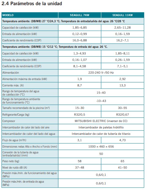 Dependiendo del modelo específico, la Klinwass Seagull puede ofrecer diferentes capacidades de calefacción, adecuándose a piscinas de varios tamaños. Es importante elegir la capacidad adecuada para asegurar un calentamiento eficiente.