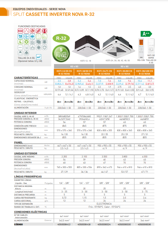 KOSNER aire acondicionado inverter 4.536frig/h SERIE KSTI 18N/50 NOVA EVO