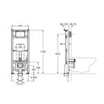 Bastidor empotrable con cisterna de doble descarga. 47,5 cm ancho x 10,7 cm fondo x 119 cm alto.