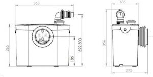 Triturador de aguas residuales de 330 x 222 x 207 mm.