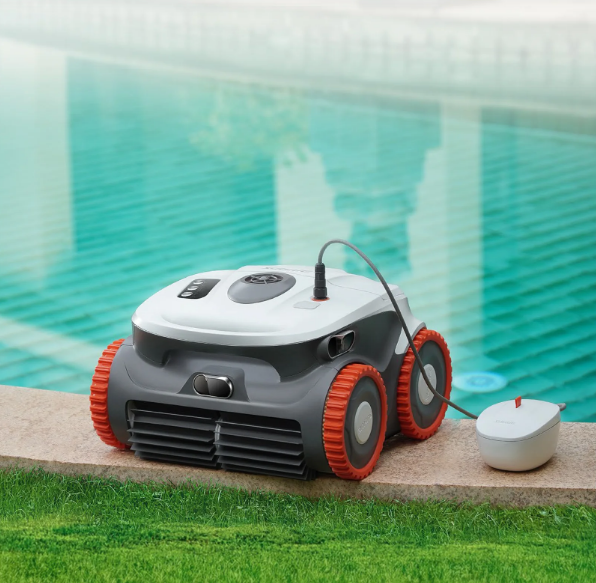 Doble motor de alto rendimiento, tracción de 4 ruedas, fuerte agarre, trepa por las paredes de la piscina con libertad; Gran movilidad, movimiento más flexible.