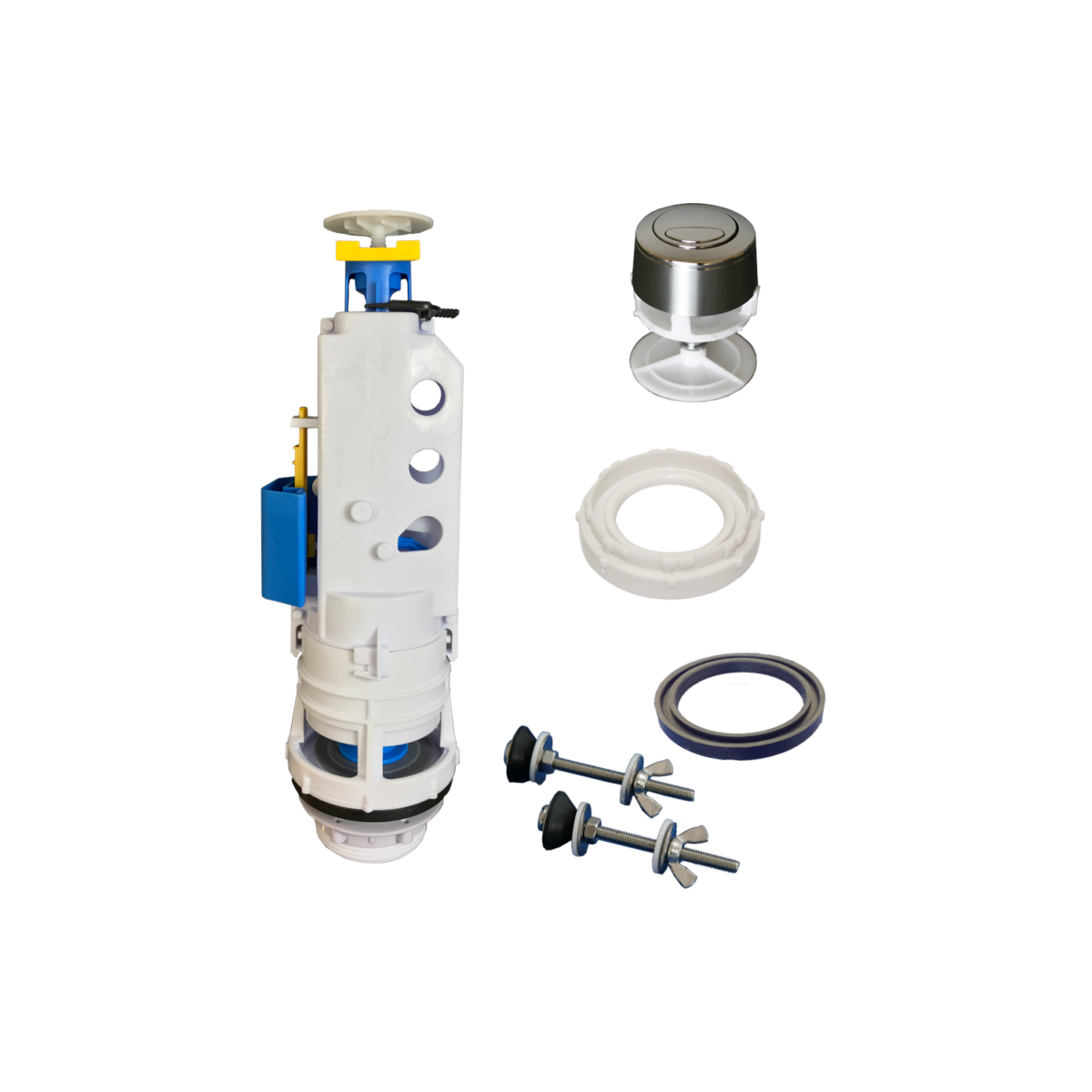 Mecanismo de doble descarga con pulsador y kit de montaje.